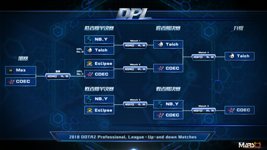 次日首场比赛更像是DPL保级战的重演,两支胜者组队伍打得难解难分,最终Taichi战队以2:1战胜CDEC成功锁定一个DPL名额。败者组半决赛中,NB.Y延续了自己与Taichi对阵时的良好状态,战胜了同样来自DSPL的Eclipse战队挺进败者组决赛,但最终还是败给了CDEC。2018DPL第一赛季第十与第十一名的两支队伍成功保级。