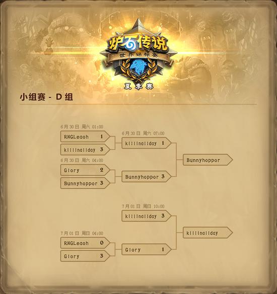 第一局日本选手使用嘲讽德鲁伊,RNGLeaoh使用战吼萨满祭司,RNGLeaoh在6费派上末日预言者的决定颇具争议,德鲁伊自此建立起场面优势,萨满祭司疲于解场很快败下阵来。第二局glory使用潜行者,RNGLeaoh换上术士,潜行者3费造出4-4任务达人,RNGLeaoh的魔块术士无法解掉,潜行者迅速完成斩杀。第三局glory使用战吼萨满祭司,萨满祭司2费派上凯雷赛斯王子,术士6费便仅有9血,无力抵抗,glory成功进入败者组决赛。