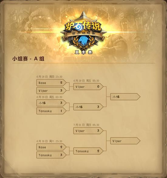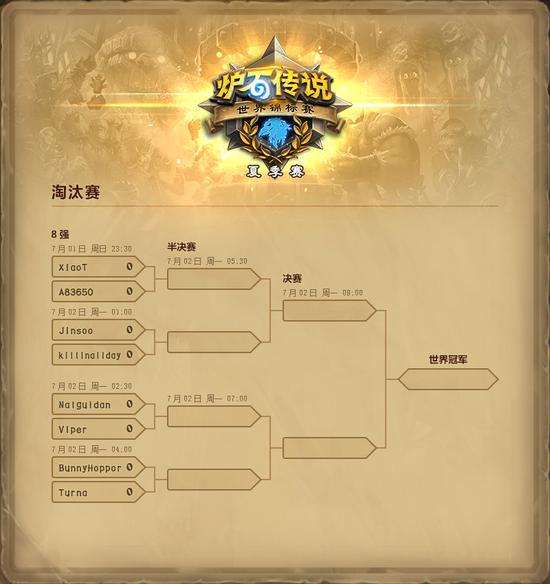 2018《炉石传说》世界锦标赛夏季赛第三个比赛日的比赛在6月30日晚打响,经过激烈的角逐,Viper、A83650、Turna、killinallday这四位选手从败者组杀出晋级八强,他们将与之前晋级的小惕、Nalguidan、Jinsoo、Bunnyhoppor一起展开淘汰赛的对决,争夺本次夏季赛的冠军。中国赛区的深海羽翼、卢卡尔、RNGRNGLeaoh都在小组赛中遗憾折戟,小惕成为了八强中的唯一一个中国区选手。