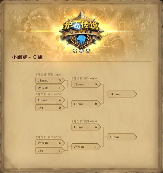 第一局dog使用嘲讽德鲁伊,卢卡尔则拿出了牧师,dog在自己的德鲁伊套牌中加入了终极感染,这削弱了牧师心灵尖啸对自己的负面影响,面对德鲁伊超高的护甲,牧师显得束手无策,德鲁伊拿下第一局。第二局偶数术士内战,卢卡尔4费派上的山岭巨人一直站到了8费最后一回合,强大的伤害能力帮助卢卡尔扳回一局。第三局dog继续使用术士,卢卡尔换上了牧师,牧师9费结束了战斗,卢卡尔反超了比分。第四局卢卡尔使用德鲁伊,dog继续使用术士,术士在中后期手牌劣势巨大,德鲁伊较为轻松地拿下比赛,卢卡尔进入到了败者组决赛。