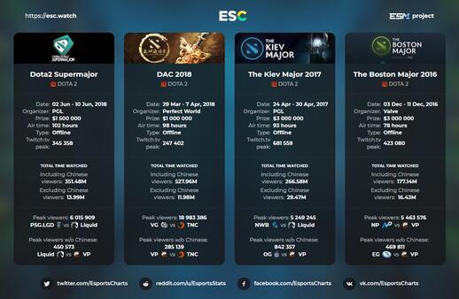 首先今年的ESL One比赛官方版权全在Facebook手里,这一举动极大地影响了观众的数量。其次是考虑时差的问题,直接拿SuperMajor、DAC的数据和去年的波士顿基辅比较是没有意义的。