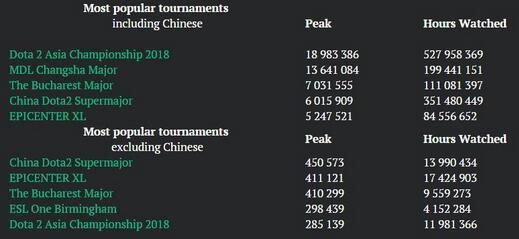 除了峰值数据之外,均值数据也很有象征性代表性。总的来说就是,SuperMajor刨去中国的观众数量是137720人,而波士顿Major有210930人,基辅Major则有316260人,这之间相距甚远。但是值得庆幸的是为2018震中杯比2017多了38300人,总共有179950人。