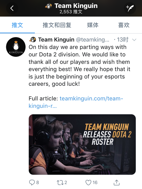 今天,我们与我们的DOTA2分部分别。感谢我们所有的队员,祝他们以后万事如意。我们也希望,在企鹅的这段时间只是他们职业生涯的一个开始,祝大家好运!