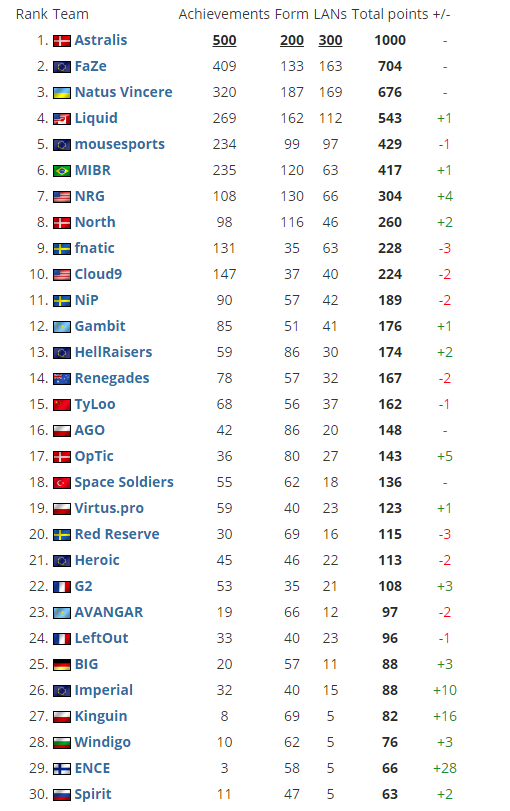从上图可以看到,ENCE(allu)和Kinguin(TaZ)晋级欧洲Minor后,排名分别上升28和16名。