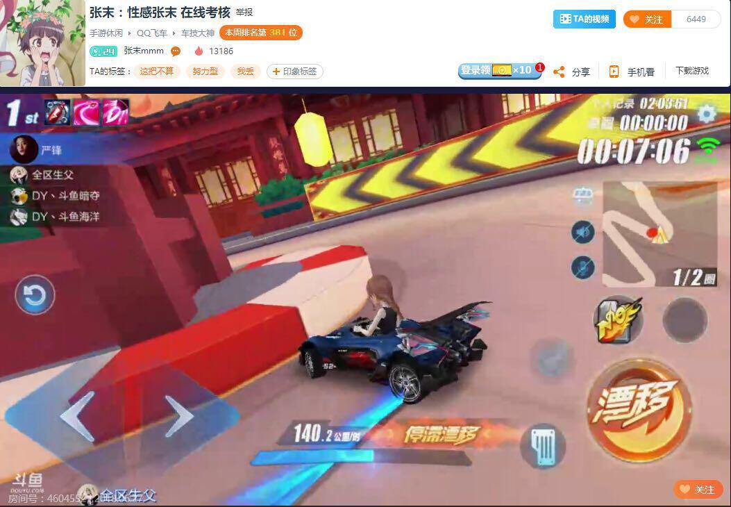 此外,斗鱼平台也拥有多位优秀的QQ飞车顶级主播,如知名主播午夜锦年,此外斗鱼主播青山还曾出征过职业联赛并拥有出色发挥。