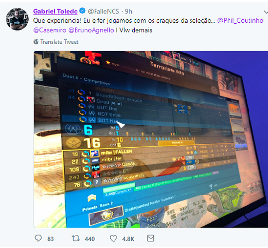 7月4日凌晨,刚刚转投MIBR的巴西CSGO选手FalleN和fer在打完科隆站比赛之后,竟然邀请巴西足球队队员一起打CSGO。