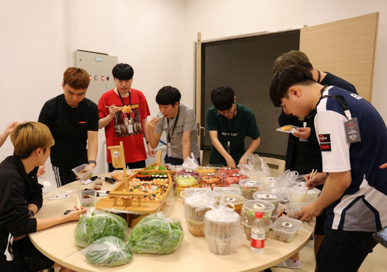 LOL洲际赛开赛在即,KING-ZONE DragonX全员与7.2日抵达大连,受到了粉丝们的热情欢迎。虽然比赛还未开始,但粉丝已经按耐不住以一场丰盛的晚餐来应援选手们了。