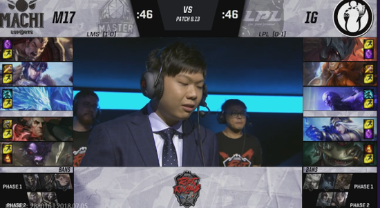 7月5日,亚洲洲际对抗赛第一天的第二场比赛,LPL的IG战队迎战LMS赛区的M17战队。值得一提的是IG战队选择了让久疏战阵的The shy顶替Duke首发登场。