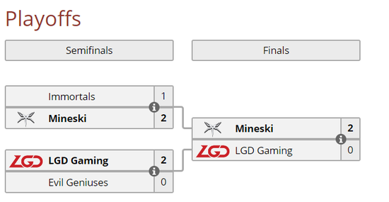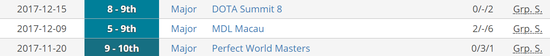 终于,放任自流的态度让PSG.LGD在17年11月迎来了从未有过的大溃败。先是完美大师赛,接着是MDL澳门站,随后是巅峰联赛第八季——三个比赛,PSG.LGD都是在小组赛阶段就全军覆没。而让观众更无法接受的是,PSG.LGD在三个比赛中都位居所在小组的倒数第一名。你能想象吗?那个连Infamous和SG都不如的PSG.LGD,已经掉入了伸手不见五指的万丈深渊。