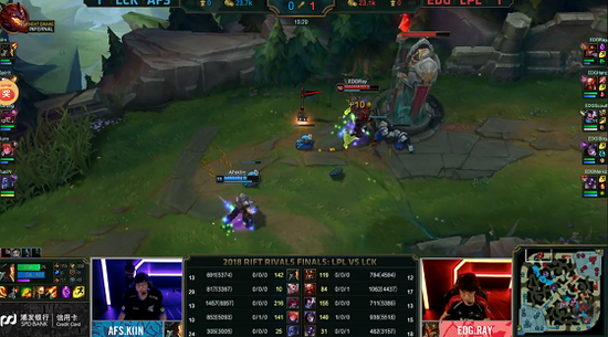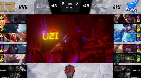 决胜局LPL赛区派上RNG,LCK则派出了AFS。RNG首抢了AFS最顺手的英雄洛。