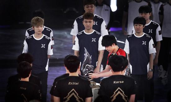 不过30分钟IG先手开大龙,KT众人赶来,刀妹想绕后切后排但是反被先秒掉。IG只能后撤。KT杀掉IG3人之后反拿下大龙。34分钟刀妹在野区被慎先手开到,IG本想反打,但是维克兹大招直接杀掉IG两人。KT顺利一波拿下比赛。