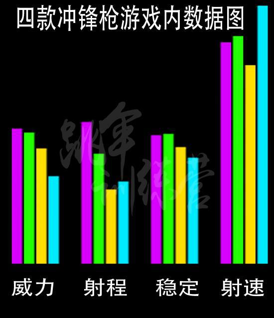 在这个游戏内自带的武器数据图中,几乎看不到任何有用的信息。大致可以看出四把冲锋枪可有所长但在其他方面有着绝对的劣势。