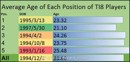 刀友fireattack根据液体WIKI资料做了一个#TI8国际邀请赛#选手的平均年龄表,结果如下: