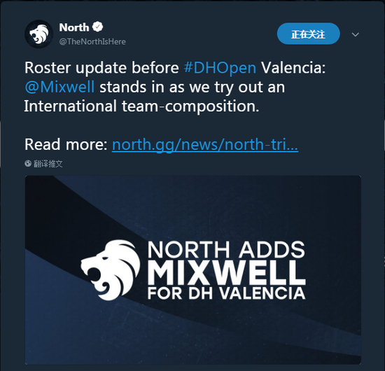 今日North官方发表声明他们将暂时以Mixwell替代mertz参加DH瓦伦西亚站与伦敦FaceIT Major这两届大赛,CEO表示North近期在防守上出现的弊端希望由引进Mixwell做一个好的开端,从而强化队伍在CT方上的实力。