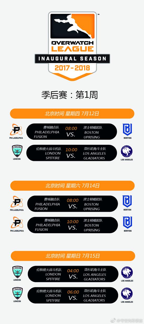 2018年《守望先锋联赛》季后赛即将拉开帷幕,终于熬过一个半月的休赛期啦!本周费城融合队、波士顿崛起队、伦敦喷火战斗机队以及洛杉矶角斗士队将争夺半决赛的名额。