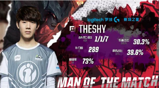 不仅是诺手惹人眼球,新剑魔在比赛中的抢眼表现也同样大改了玩家对其笨重坑人的“铁憨憨”成见,IG战队的The shy同样在对抗M17时首场比赛就选择了新剑魔,用钢铁之躯打出了一组极其华丽的数据,尽管只有1个人头,但伤害比与承伤比都超过30%,成为真正的有肉有输出的“均衡”级英雄,而新剑魔的抢眼表现也重新巩固了The shy“世界第一上单”的称号。