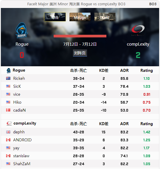 美洲区Minor全部名次: