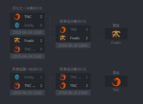 在TI8国际邀请赛地区公开赛开始前,Black^选择加盟Entity战队,再度向自己的TI梦发起冲击。而Entity通过在海选赛中的精彩表现成功打进预选赛,更是凭借自身不俗的实力排名小组第四晋级淘汰赛,但无奈的是,Entity在随后的淘汰赛中接连败北,面对TNC双雄还是没能杀出重围,无缘TI8。