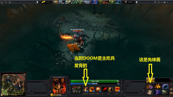 这是实际画面最后一波Na’Vi开雾击杀在上路二塔下发育的DOOM,DOOM不能买活导致EHOME全线崩溃,EHOME只能打出GG,Na’Vi夺得了TI1的冠军。