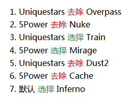 Faceit Major亚洲区Minor的B组第一场败者组淘汰赛由5Power对阵以色列队伍Uniquestars,胜者将与Tainted Minds争夺B组的第二个出线名额,地图BP情况如下: