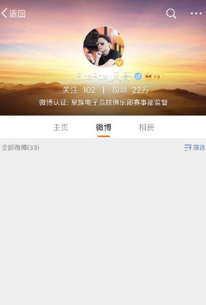 皇族赛事经理风哥,也是2017年RNG的总教练突然清空微博,更换认证,疑似是要离开RNG回台湾。