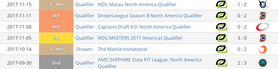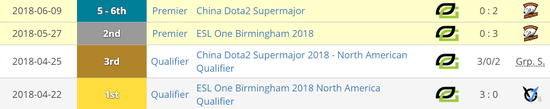 Optic并没有止步于Minor冠军,接下来的两个月中,他们向TI8的直邀名额发起了冲锋。在国内,Optic的比赛被人称作“ROTK成语大赛”——如果Optic拿到了ESL伯明翰Major的冠军,那么他们就能将VGJ.T拉入万丈深渊。当时的情况相信各位都还记忆犹新,Optic在本赛年倒数第二个Major中一路过关斩将,杀入了与VP的总决赛。只可惜,他们与顶级队伍的实力差距宛如天堑。VP用一个三比零拯救了摇摇欲坠的VGJ.T。但上天并没有放弃Optic,之后的中国超级Major,预选赛落败的Optic顶替OG的名额,获得了参加机会。这一次,只要杀入四强就能打进TI!然而,三幻神就像城墙般不可撼动。先输秘密,再输VP,Optic止步第六名。