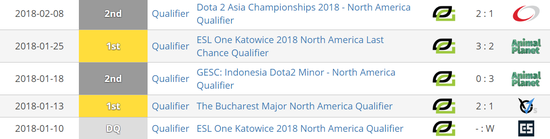 成型的Opitc在北美区预选赛中可谓是神挡杀人,佛挡杀佛。布加勒斯特Major预选赛,Optic二比一战胜VGJ.S晋级。ESL卡托站,Optic在第一轮预选中不慎落败。而到了第二个名额的争夺战,面对同样选择自主创业的2000哥,PPD丝毫不留情面。三比二险胜动物星球,Optic杀出重围。开年第一月的成绩已经非常喜人,而到了二月初,Optic又拿到了DAC的门票。虽然在震中杯预选赛中被EG击败,但此时的Optic已经呈现出了一股不可阻挡的势头。