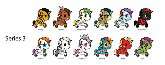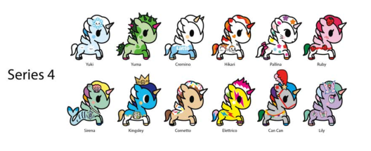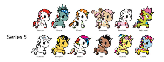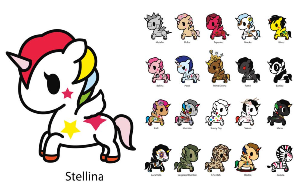 Tokidoki旗下有不同的形象家族,这些人物形态迥异、各具风格,适合不同年龄段,不同个性的族群。盲盒主要有独角兽家族、美人鱼家族、仙人掌家族、寿司车家族、甜甜圈家族、牛奶及早餐家族。