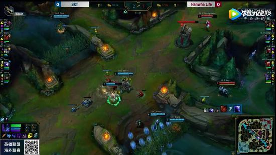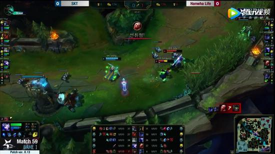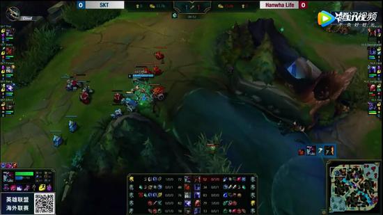11分30秒,SKT发动阵容优势,蛤蟆开车带寒冰来到中路Gank,岩雀也从侧边包抄,加里奥W闪嘲讽住瑞兹,瑞兹无路可逃,被控制链接上直接被击杀,岩雀拿下人头,但SKT这几波Gank并没有拿下更多的经济优势,双方经济差距不大。