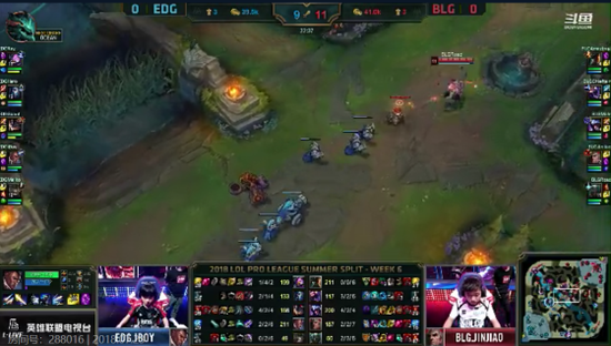 7月23日,LPL第六周首日第二场比赛西部第一的EDG战队在上海迎战自己的兄弟战队BLG。
