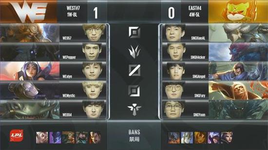 7月24日,SNG来到西安迎战主场作战的WE,两支队伍最近都处于一个连败的状态,但WE今天又做出了人员变动,换上了Mystic和Pepper,这次变动也成功帮助WE2比0SNG拿到了主场首胜!