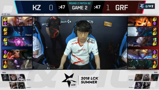 7月24日,LCK夏季赛第六周第一天由目前处于联赛第一的GRF迎战第三的KZ,版本也更新到了8.14,两局比赛GRF继续展示出了超强的团队配合能力,2-0击败KZ。
