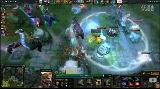 熊猫秒买活,LGD慑于谜团大招威力,开始撤退。而IG五人齐心合力,一路猛追不舍,从天辉下路,一路打到了夜魇中路。LGD出现了严重失误,所有人都是被一个个追上击杀,然后又一个个买活,正面战场始终处于以寡敌众的局面,结果大优局面被对面一波推平。