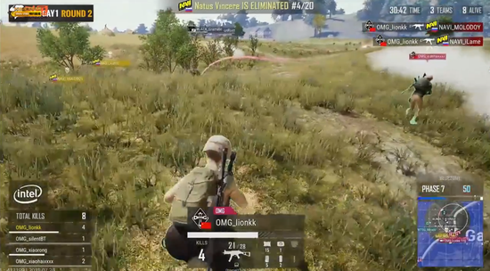 先说OMG的,除开第二局的优秀选点让他们成功吃鸡外,其余三局均有一个非常严重的问题————最开始的转移过程中探点队员被淘汰。OMG在第一天的比赛中选择了地图中下方海边野区进行收集,采用快搜进圈抢点的战术。不管是效率还是结果来讲,OMG的战术可谓优秀,然而第一个出去探点的队员在三局比赛中都遭到了淘汰。第一局是xiaohai,第三与第四局都是xiaorong。虽然探点队员的牺牲为OMG觅得了正确且安全的进圈路线,但三局都上演了一模一样的情况着实是值得注意的问题。前期过快的减员让队伍的整体战斗力下降也是导致了OMG这几局中被淘汰的关键所在。如何保证先头队员存活的同时仍能寻找到一条安全的进圈路线是接下来的比赛当中OMG需要解决的一大难题。
