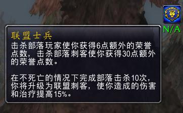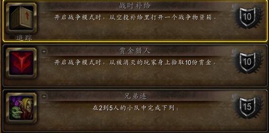 当你开启战争模式并来到黑海岸后,你将获得部落士兵/联盟士兵的buff:击杀联盟/部落玩家使你获得6点额外的荣誉点数,击杀联盟/部落刺客使你获得30点额外的荣誉点数。在不死亡的情况下完成联盟/部落击杀10次,你将升级为部落/联盟刺客,使你造成的伤害和治疗提高15%,直到你离开该区域或死亡。