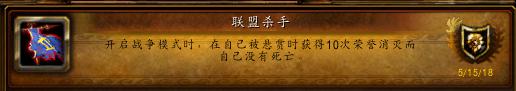 在刺客状态下击杀10名敌对玩家而自己不死可获得光辉事迹:“联盟/部落杀手”。