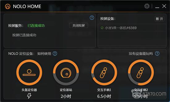 9.启动小米VR一体机上安装好的NOLO Home App,即可自动在PC端的NOLO Home客户端上自动呈现出投屏画面;倘若未能实现自动投屏,可以在PC端NOLO Home主界面的“投屏设备”列表中找到待投屏的小米VR一体机设备,点击连接即可;