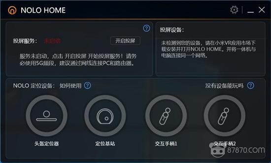 8.在PC端打开NOLO Home客户端,然后点击主界面中央的“开启投屏”按钮;