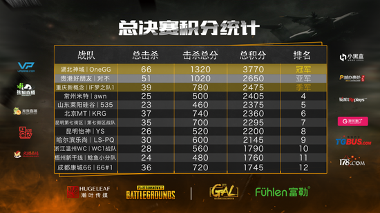 北京时间7月28日中午1点,2018富勒杯GAL PUBG 竞技赛S2总决赛正式打响。经过了两天紧张激烈的大战,来自湖北神域网咖的OneGG战队凭借着两次吃鸡的好成绩,以3770分力压群雄,将冠军奖杯捧入怀中。随后,来自贵港好朋友网咖的对不战队也在多场比赛中有过不错的发挥,他们最终以2650分名列第二。虽然在第一天的比赛中表现一般,但来自重庆新概念网咖的IF梦之队1并没有放弃希望。相反,他们在第二条奋起直追,并获得了第三名的成绩。