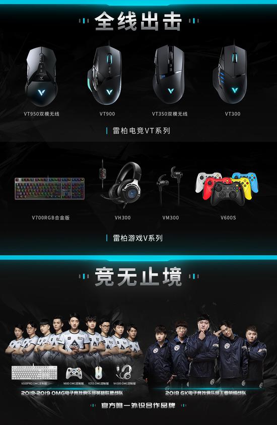 雷柏高端电竞VT系列,引领科技,以“双模无线”开启无线游戏新纪元,专业助力用户电竞梦想进击。