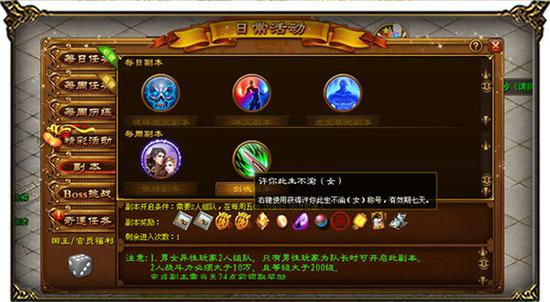 侠缘副本是情侣副本,与其他副本不同,它需要男女异性2人组队来挑战,成功完成副本,可以得到大量与情侣相关的道具大礼以及各种珍稀道具。