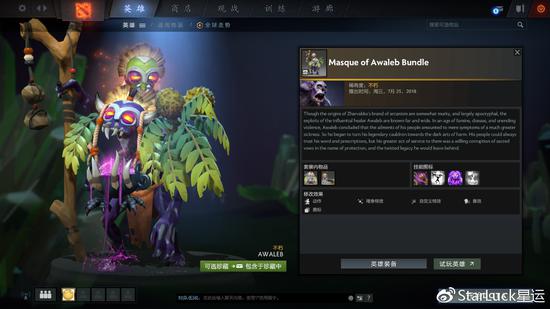 神医面罩不朽改变的特效,头上吊着的一碗紫色毒药就是诅咒技能要用到的毒药,技能使用后紫色毒气从地面往上跃,被诅咒到的单位全身泛起紫色泡泡。