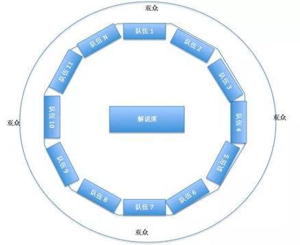 如果用25支队伍这种规模来说,可能现场光选手极其工作人员就可能多达数百乃至上千人,这样的现场布置肯定是不行的,我们不妨可以开一下脑洞,理想的、对观众友好的的现场可能是这样的: