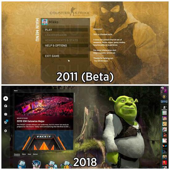 在Reddit论坛上,有网友爆出了CSGO 2011年测试版本和如今最新全景UI的对比图。