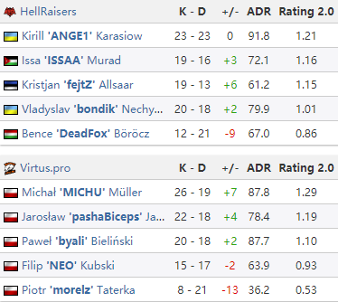 第二场比赛是HellRaisers战队对阵VP。相信看过比赛的人,对于VP的新第五人morelz只有一个感觉:捞。必须承认,morelz的状态确实太差了,各种白给,假如morelz稍微发挥的话,VP还是有希望拿下比赛的。