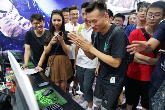 下午14:00死斗枪王大赛正式开赛,CS:GO试玩区围的水泄不通,玩家们纷纷展示出自己的凌厉枪法。当然也让GO哥见识到了跑打AK,狙击诱饵,沙鹰泼水……