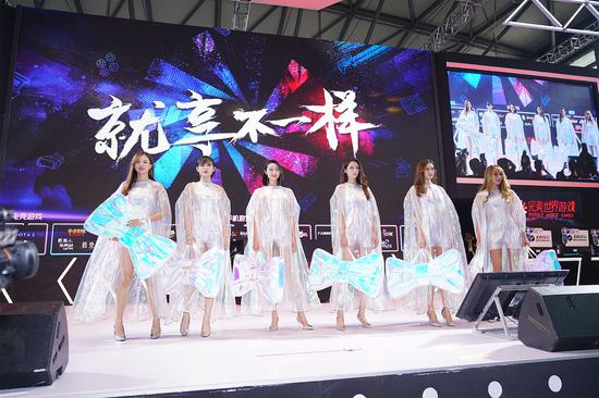 上午主舞台有一场水友间的友谊赛,值得一提的是,场上有两位漂亮妹子,重要的是她们CS:GO打的比GO哥还好。
