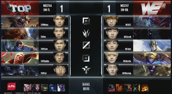 8月6日,LPL第八周第一天的比赛WE战队在西安主场迎战Top战队。近期WE战队的状态已经有了好转,在昨天的比赛中刚刚战胜了VG拿到了自己赛季的第二胜。然而在今天的比赛中,WE虽然一上来势头凶猛先下一城,但是Top依靠着稳健的运营稳扎稳打完成让一追二击败WE,WE的连胜还是未能如愿。