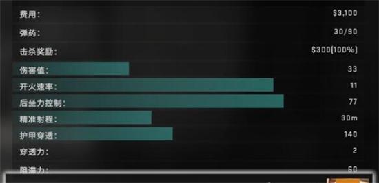 而枪支的属性界面多了两条内容:穿透力和阻滞力。穿透力是指穿透墙体等地图模型的能力,而阻滞力是指敌人被击中时的减速效果,俗称“粘人”能力。犹记得CS1.6中的MP5就是因为精准度和粘人能力被称为“冲锋枪教科书”,虽然CS:GO整体削弱了武器的粘人能力,但这一项数据依旧是武器一个重要的指标。