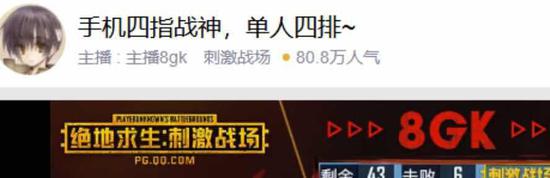 如果有人问小编刺激战场第一人是谁?我会毫不犹豫的说是8GK,作为企鹅电竞刺激战场板块的第一人,8GK以一手单人四排,把把至少20杀的成绩,成功吸引了网友的注意力,即使在高端局,8GK也是疯狂屠杀,因此被粉丝冠以战吃鸡灭霸的称号。